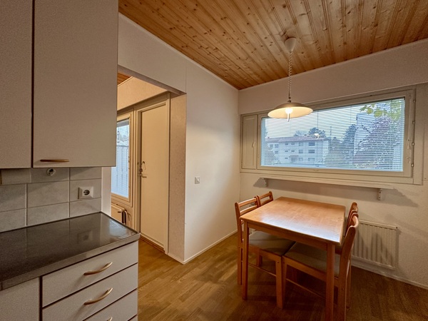 Kodikas ja viihtyisä rivitalohuoneisto rauhallisella alueella. Asunnossa on oma pieni piha, joka tarjoaa mukavan ulko-oleskelutilan vaikkapa kahvihetkiin tai kesäisiin grilli-iltoihin. Sisätiloissa on laminaattilattiat, ja keittiökaappien ovet on uusittu, mikä tuo tilaan raikkaan ja siistin ilmeen. Huoneistossa on oma sauna, ja lisäksi taloyhtiössä on yhteinen sauna asukkaiden käytössä. Talo on keskuslämmitteinen, ja lämmitys sisältyy vuokraan, mikä tekee asumisesta vaivatonta ja kustannuksiltaan ennakoitavaa. Talossa on myös DNA:n laajakaista ja kaapeli-tv (DVB-C) valmiina. Asunto on muuttovalmis ja sopii hyvin niin yksinasuvalle kuin pienelle perheellekin, joka arvostaa rauhallista ja helppoa asumista rivitaloympäristössä. |