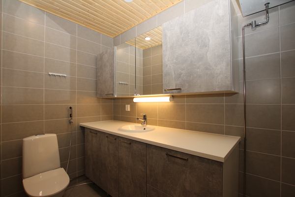 pesukoneliitäntä, lattialämmitys, wc-istuin, suihku, peilikaappi, kiinteät valaisimet, kylpyhuonekaapisto |