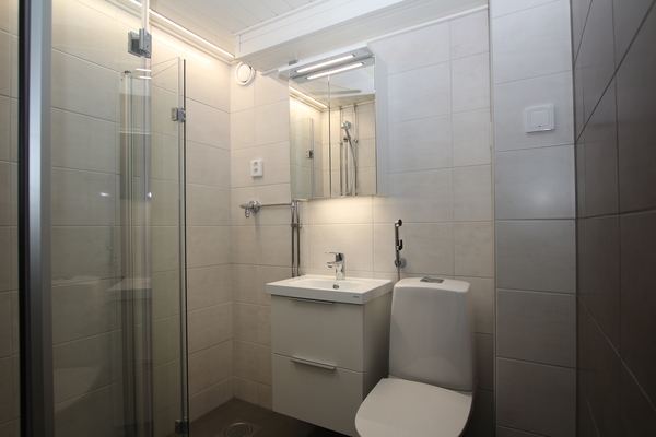suihkukaappi, pesukoneliitäntä, lattialämmitys, wc-istuin, peilikaappi |