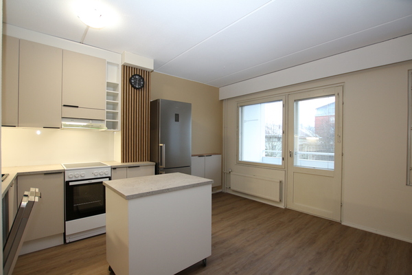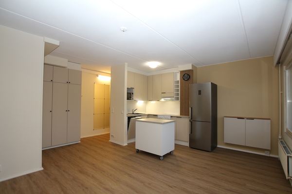 Upeaksi remontoitu näppärän kokoinen saunallinen kaksio parvekkeella keskustasta hyvien kulkuyhteyksien varrelta. Keittiö, saunan lautee sekä lattia- ja seinäpinnat täysin uusittu 2025. Keittiössä saareke, joka jakaa kätevästi tilaa olohuoneen ja keittiön välillä. Asunnossa hyvin säilytystilaa makuuhuoneessa koko seinän levyisen kaapiston ansiosta. Parveke sisäpihan suuntaan. Oma sauna tilavassa kylpyhuoneessa. |