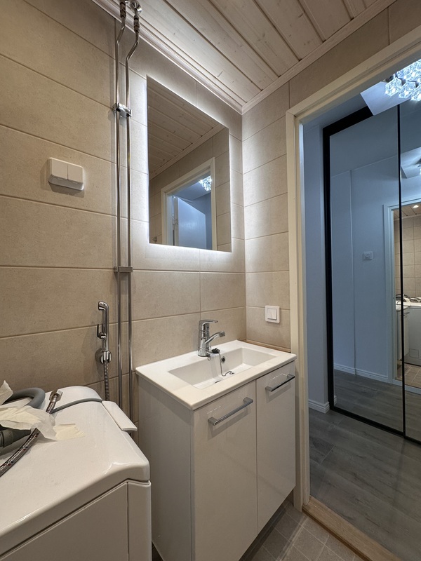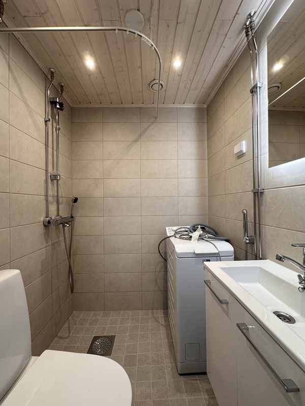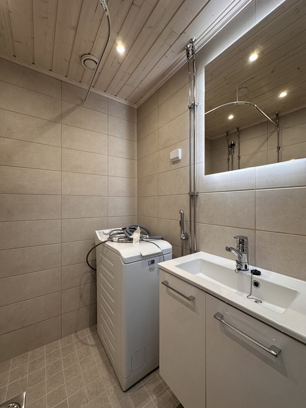 pesukoneliitäntä, lattialämmitys, suihku, peili |
