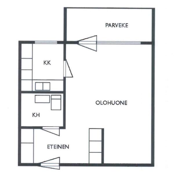 Kerrostalo, 1h + kk + kph + lasitettu parveke, 30.0 m2 |